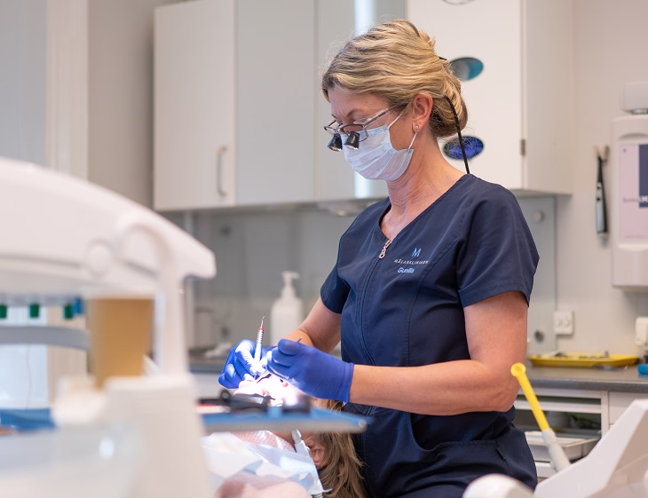 Vår tandhygienist på Mälarkliniken arbetar främst med förebyggande tandvård genom att ta bort tandsten, putsa och polera tänderna samt ta bort plack.